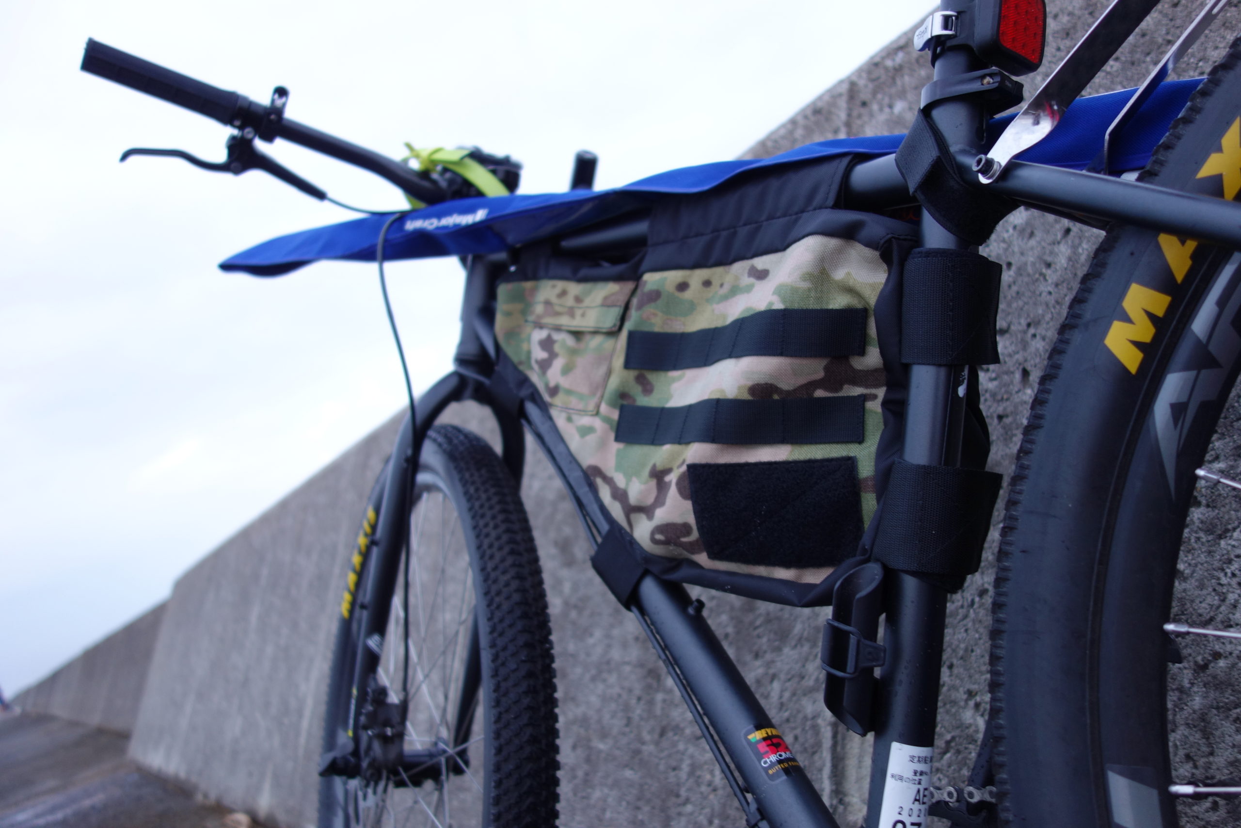 「小物はフレームバッグに、大物はバックパックに」など、複数のバッグを組み合わせるのもアリ。